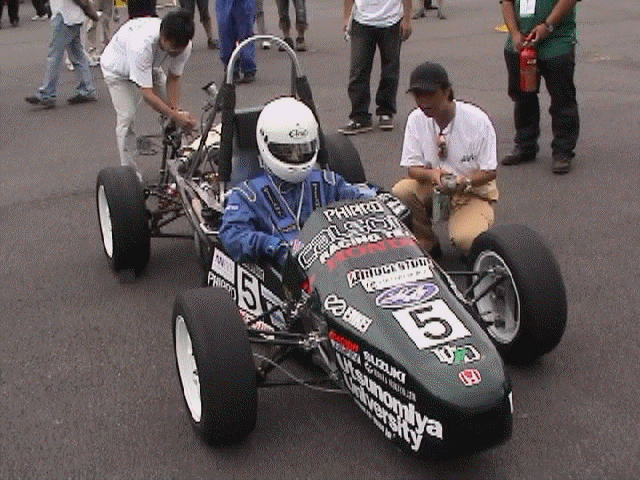 宇都宮大学(フレーム,アセンブリー担当,幹事校),慶応大学(サスペンション,駆動系担当),明星大学(エクゾースト担当),武蔵工業大学(エンジン担当)の合同チームによる学生製作の車両です.