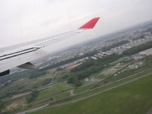 小さなコーナリングGの後、滑走路へ。 そして、急加速→離陸! しばらく、日本とはお別れです。 |