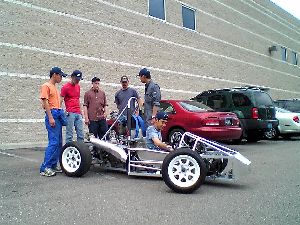 これから大会までの数日間は、車両の整備と静的イベントの準備です。 ホテルから車で、車両整備場所まで向かいます。 |