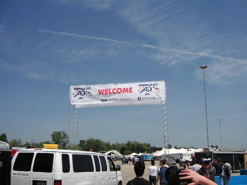 こちらが、UUFDのピットです。 海外遠征のため、テントや大掛かりな設備はありません。 F-1モーターホームのような大学もあれば、私たちのようなピットもあり、バラエティーに富んでいます。 車両をトレーラーから降ろし、車検へ向け最終チェックを行っています。 |