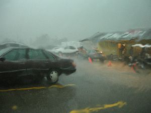 とてつもない量の雨が降ってきました。 これに加えて、暴風と雷です。 この地方では有名な、サンダーストームという現象でした。 |