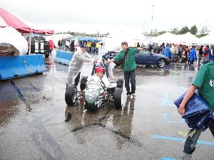 サンダーストーム後のオートクロスはウエットコンディションで行われました。 トップチームでも列に並び遅れた大学は、レインタイヤでのアタックを余儀なくされています。当然タイムは、ドライで走ったUUFDよりも悪く、私達のタイムは上位につけています。 これは、強豪UTA。第二回日本大会に参戦予定の大学です。 |